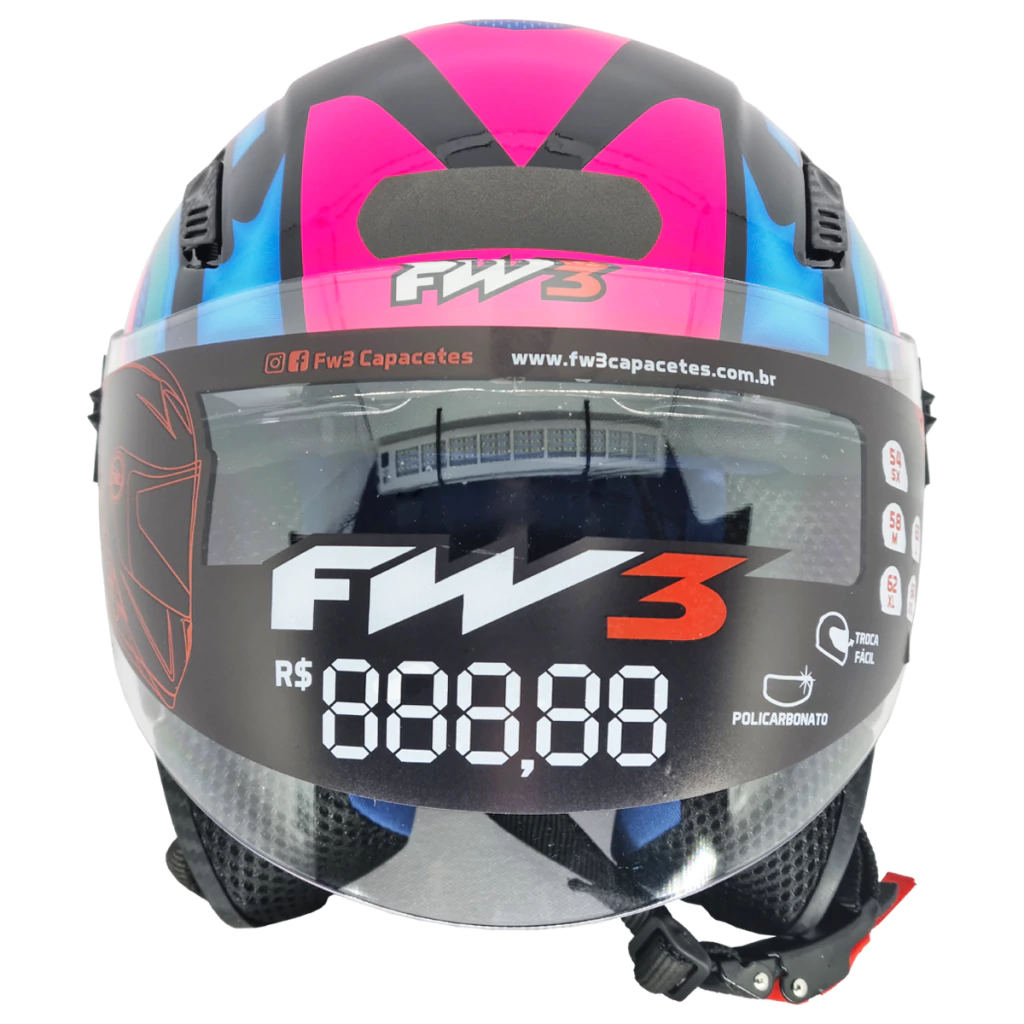 Capacete Com Viseira Modelo X Open UP FOX Rosa com Azul 56/58/60 com Óculos Interno Fumê - FW3 Modelos