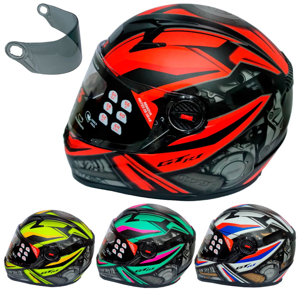 Capacete com Viseira Modelo GTN R1 - FW3 Modelos + Viseira Fumê
