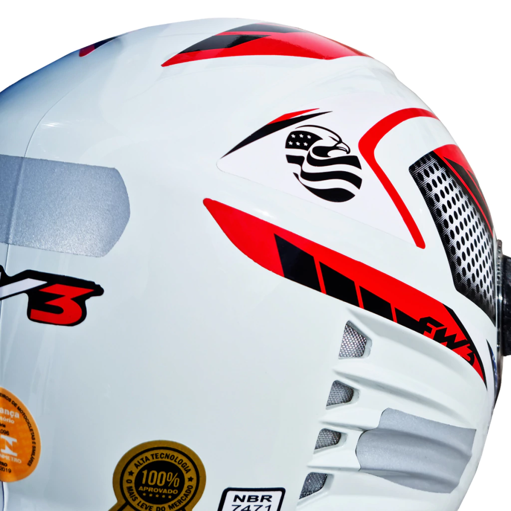 CAPACETE FW3 MODELO X OPEN PAÍSES PRETO BRILHANTE/BRANCO BRILHANTE