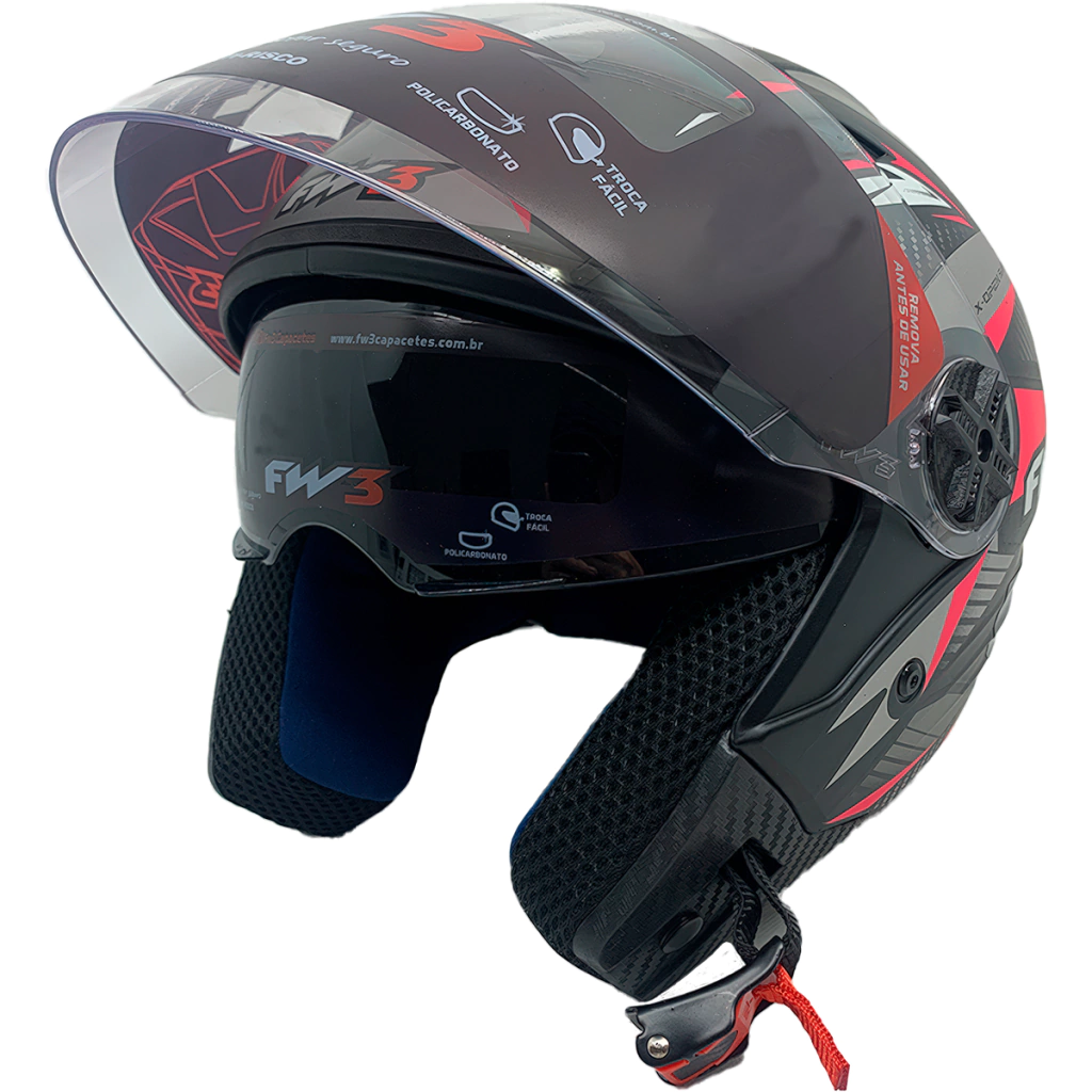 CAPACETE FW3 MODELO X OPEN UP RAPID C/ ÓCULOS INTERNO FUMÊ