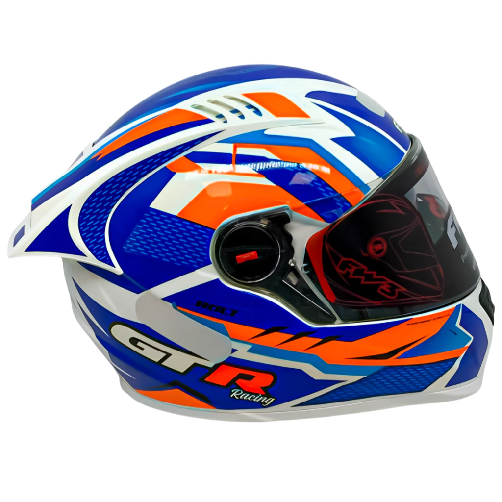 Capacete FW3 Modelo GT Racing Bolt Branco com Azul e Laranja + Viseira Revo Azul Brilhante FW3.
