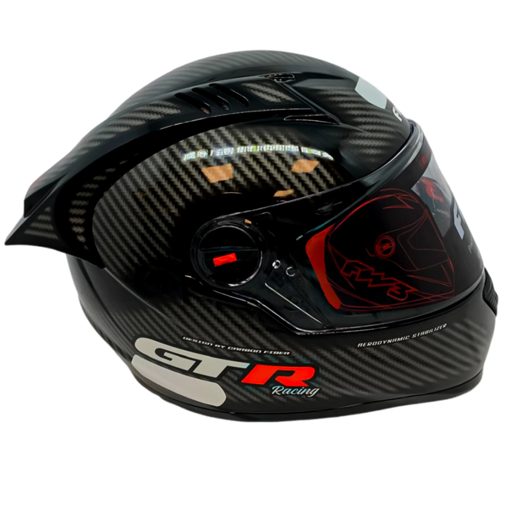 Capacete FW3 Modelo GT Racing Carbon Fiber Preto + Viseira Revo Vermelho Transparente FW3