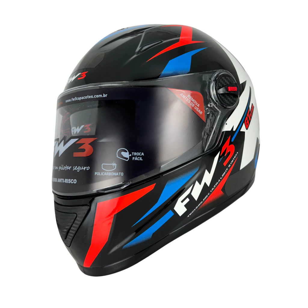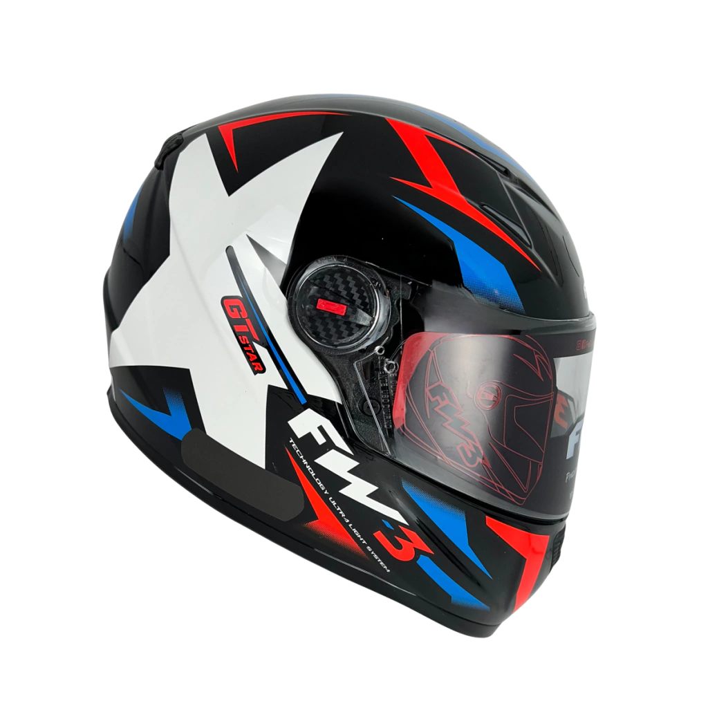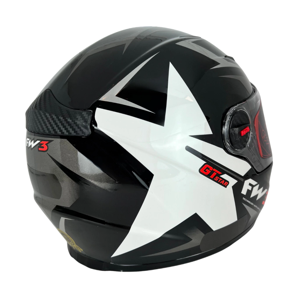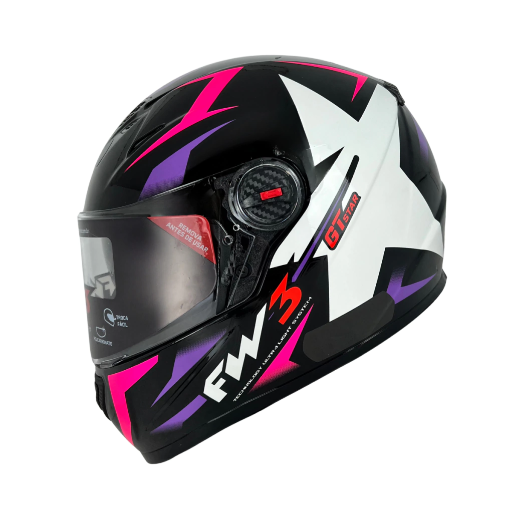 O FW3 Star foi desenvolvido para motociclistas que querem proteção de alto nível com um visual marcante. Sua base em preto brilhante traz sofisticação, enquanto a estrela branca nas laterais garante identidade única. Os detalhes coloridos em cada versão dão um toque de personalidade sem perder a elegância.