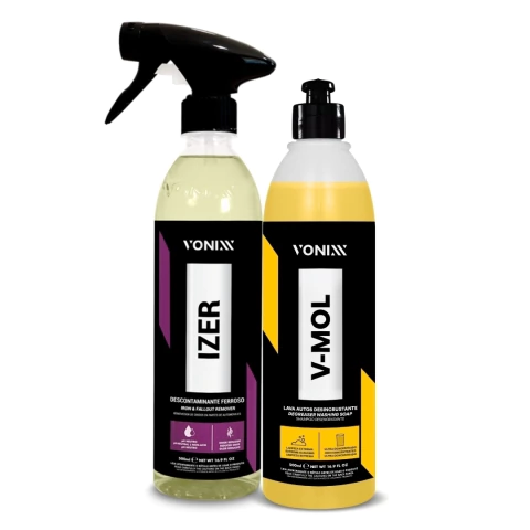 KIT LIMPEZA COMPLETA VONIXX V-MOL 500ML + IZER 500ML – LAVA AUTOS E DESCONTAMINANTE FERROSO
