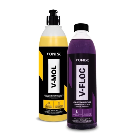 KIT LAVA AUTOS VONIXX V-MOL 500ML + V-FLOC 500ML – LIMPEZA PROFISSIONAL E SEGURA