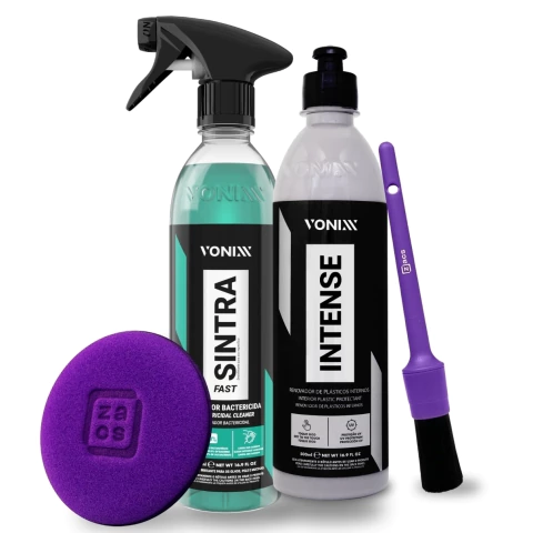 Brilho e proteção em dobro - com o Sintra Fast Vonixx e o Intense Vonixx, você garante limpeza e proteção da pintura. Finalize com o Aplicador de Espuma Zacs e o Pincel para Detalhamento Zacs para um acabamento impecável.