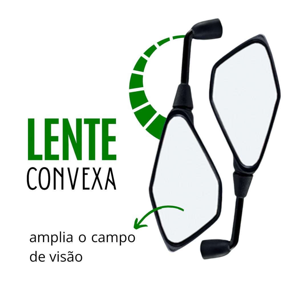 PAR Y = Lado esquerdo sentido horário / Lado direito sentido antihorario **Yamaha** Yamaha: Fazer 150 Fazer 250 Factor 125 / 150 YS 150 / YS 250 Lander 250 XTZ 125 / 150 / 250 MT-03 / MT-07 / MT-09 R3 / R6 / R1 Tenere 250 / 660 / 700 Crypton Neo 125 NMax 160 XMax 250 Royal Enfield: Classic 350 (incluindo a New Classic) Meteor 350 Hunter 350 KTM: Duke 200 / 250 / 390 RC 200 / 390 **Triumph** Street Twin Bonneville T100 / T120 Scrambler 900 / 1200 BMW: G 310 R / GS F 750 GS / F 850 GS R 1200 GS / R 1250 GS **Suzuki** GSR 750 GSX-S750 GSX-R 750 / 1000 **LENTE** A lente convexa atua na convergência dos raios luminosos antes de chegarem ao olho, permitindo a criação do ponto focal na retina, seguindo o padrão original das montadoras. (Veja o exemplo na última foto) Conteúdo da Embalagem: - 01 Retrovisor Gvs Sport Linha Premium IMPORTANTE: * Postagem em até 24h * Entrega Garantida * Produtos Originais e Certificados * COMPRE COM SEGURANÇA * Tire suas dúvidas via chat com nossos especialistas.